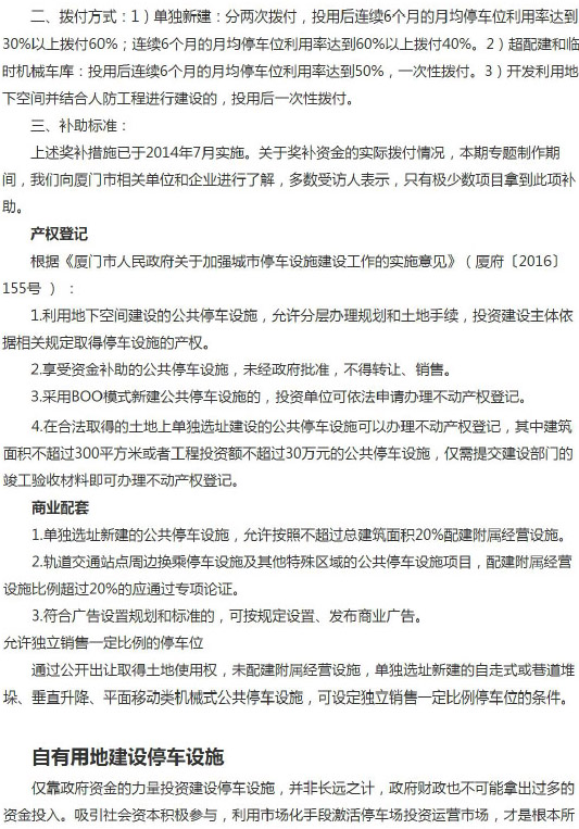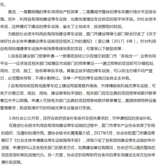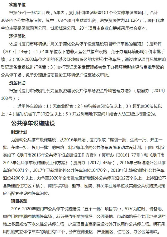厦门市停车设施建设鼓励政策